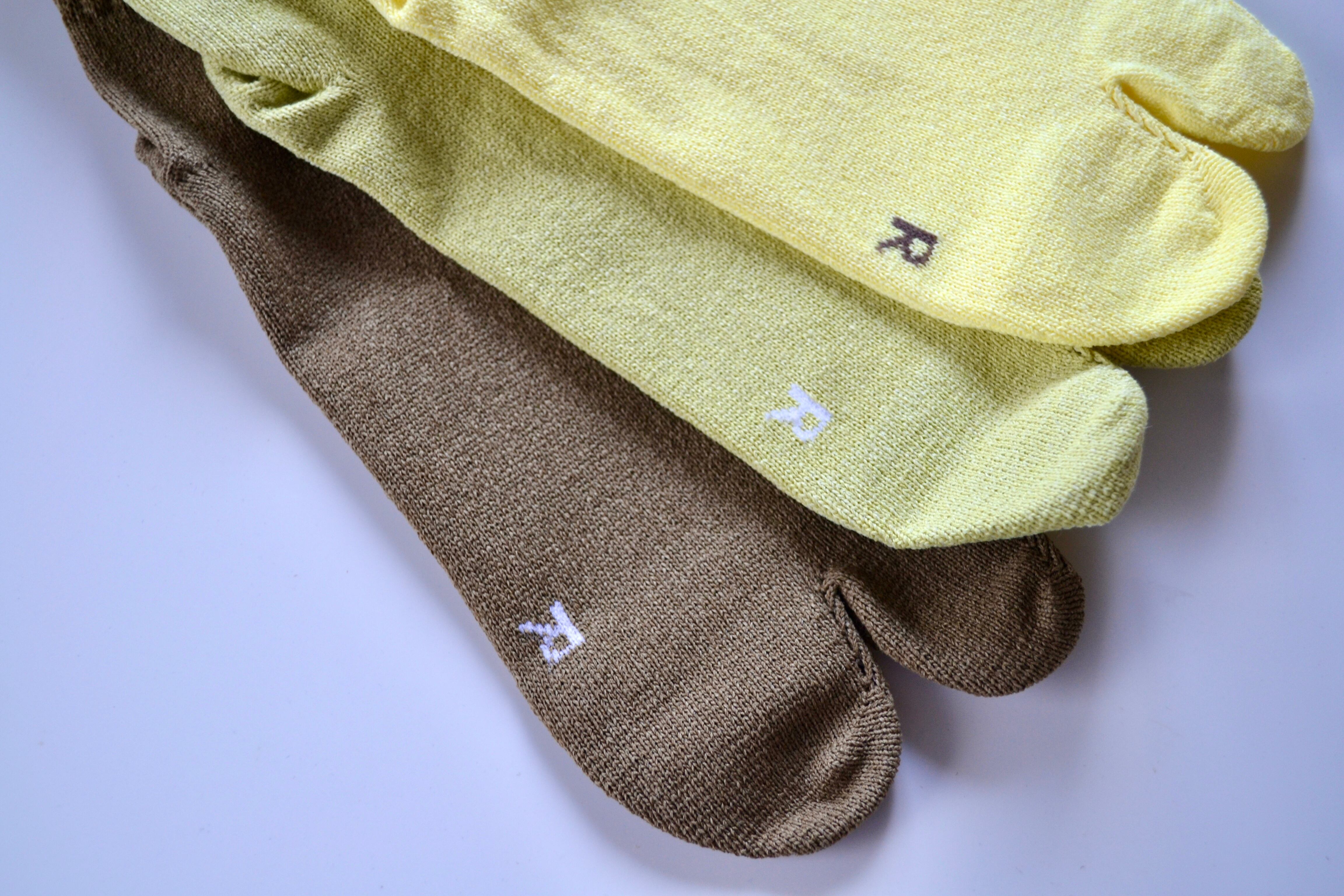 優れた清涼感、吸水速乾性の和紙糸を使ったタビ型ソックス。和紙とポリエステルの撚糸により、べたつきを軽減。素材自体が非常に軽く、耐久性が高いことも特徴で、履き込むごとに柔く馴染んでいきます。春〜秋口におすすめです。