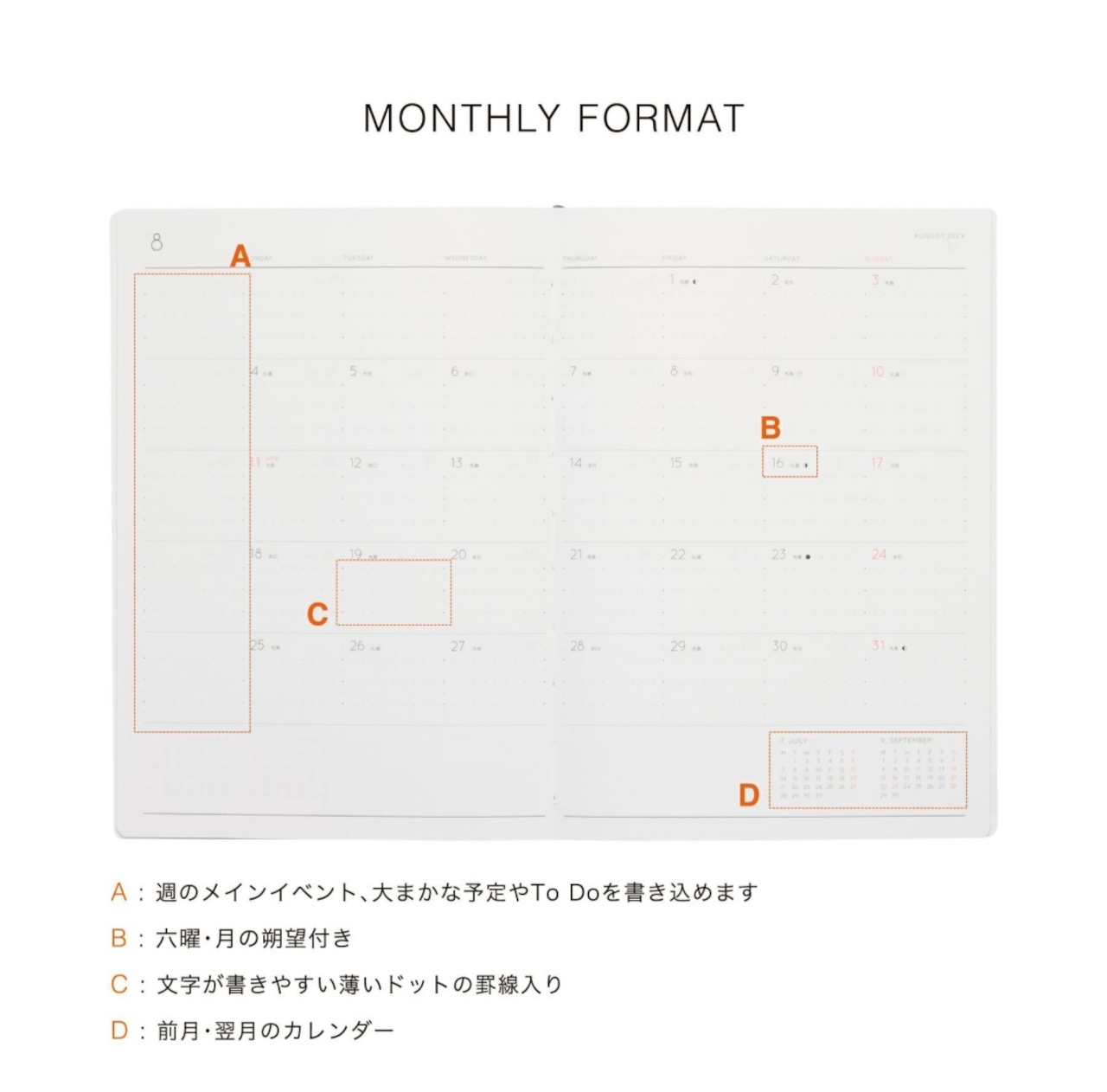 時間軸での使い方、仕事・プライベート・TO DOなどの予定管理での使い方、自分・家族・こどもの予定管理での使い方など目的によって様々な使い方が可能な自由度の高いフォーマットです。